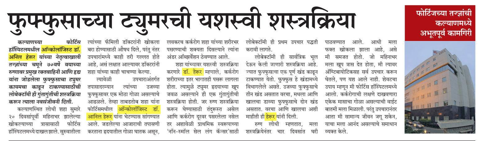 Dr Anil Heroor Cancer Care Clinic Oncologists Book Appointment Online Oncologists In Mulund West Mumbai Justdial Talking about the procedure dr anil heroor, oncosurgeon, fortis hospital, mulund, said, the patient has gone back to his family and leads a normal life now.