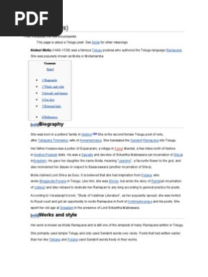 Atukuri Molla In Telugu : Identified by her caste, she was popularly known as kummara (potter) molla.