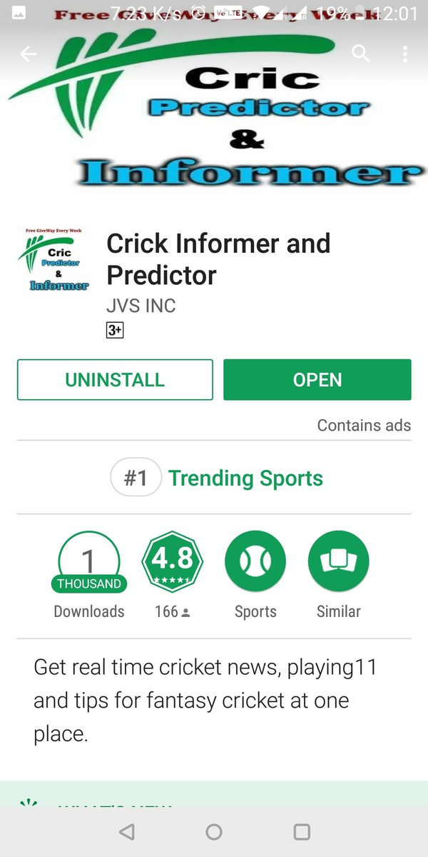 Cricinformer App - 6.track all cricket events at a place 7.special vote for captain section is provided for dream11 users.