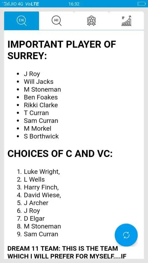 Cricinformer Dream11 Tips / 15 sri lanka won :