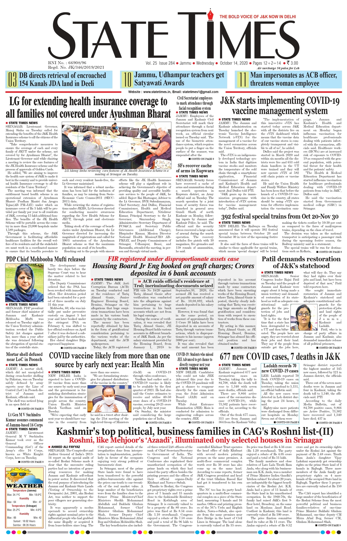 3803x6024 - Click for today's early times newspaper from jammu, india.