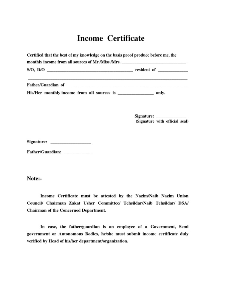 Income Certificate Income certificate is an official document issued by the state government certifying annual income the key information in this certificate includes details of the annual income of the family/individual.