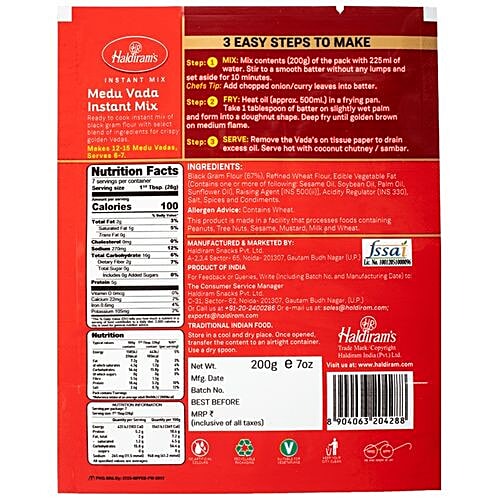 Medu Vada Nutrition Information : Medu vada or simply vada are crispy fritters made with urad daal and enjoyed with sambar or chutney.